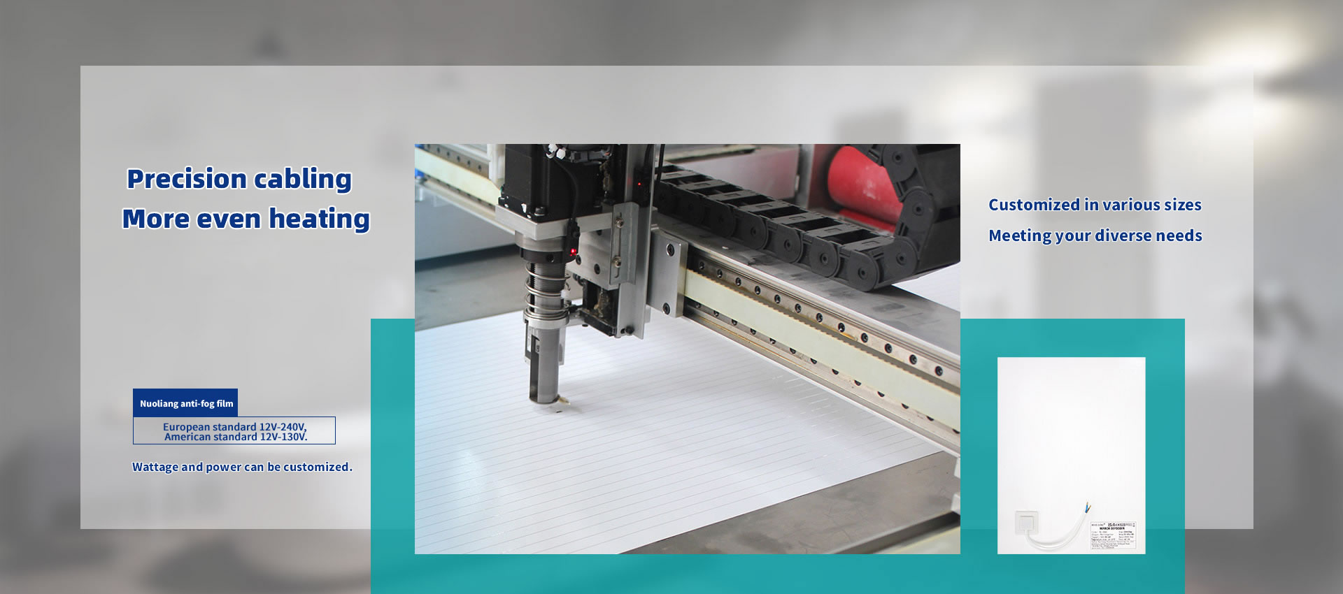 We primarily serve domestic smart mirror and bathroom mirror manufacturers, as well as cross-border e-commerce businesses. For heating films, defogging films, heating elements, bathroom mirrors, luminous mirrors, smart mirrors, and anti-fog films, choose NUOLIANG!
